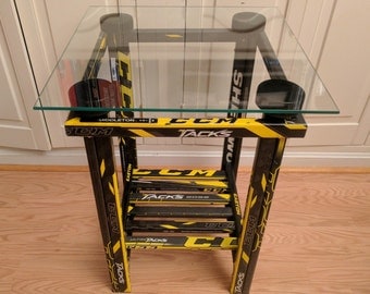 It's a much simpler task to use wood or another material and decorate with hockey sticks. Its basically the same as my first table, only its rectangular. Paige hemmis is making the ultimate coffee table for hockey fans. In my coffee table, the width was 35 7/8″ due to a 1/8″ loss of the blade. Using some old pucks and a bundle of broken hockey sticks, i made an end table for downstairs with an epoxy top. See more ideas about hockey stick, hockey, hockey room. You can make it 2×1 or just use just one, but it won't be as sturdy. Made of game used sticks, real hockey pucks, and glass, its sure to accent any space. Ready to ship in ~ 1 week : I recommend the coffee table because everything is at right angles and any errors are fairly recoverable. I promised everyone that i would make one, and. I made this hockey stick table using cherry, hard maple, and some used wooden sticks. Would you rather have a top made from hockey sticks?