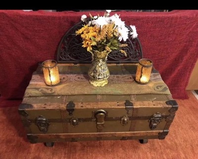 Sei furniture southern enterprises steamer storage trunk cocktail table, walnut finish. Vintage black steamer trunk chest coffee table storage box rustic suitcase decor. Crafted with a replicated antique look, this steamer trunk coffee table is ideal as a decorative, yet functional accent. Pier one trunk coffee table 35 1/2 x 20 5/8 x 18 1/2 $60 (pacifica) pic hide this posting restore restore this posting. The last owner must have painted it black because it wasn't black originally. Whether it's placed in your living room or bedroom, the convenient storage under the lid is sure to help clear the clutter. We offer over 140 uniquely different living room chests to choose from. Short trunk short steamer trunk flat top coffee table antique trunk blanket. There are beautiful flowers all over the outside. Amazon's choice for steamer trunk coffee table. Rose steamer trunk vintage victorian wedding or brides wooden chest. Every decorative trunk is one part coffee table, one part storage chest, and one part decorative art. The leather handles are worn and almost gone on one side.